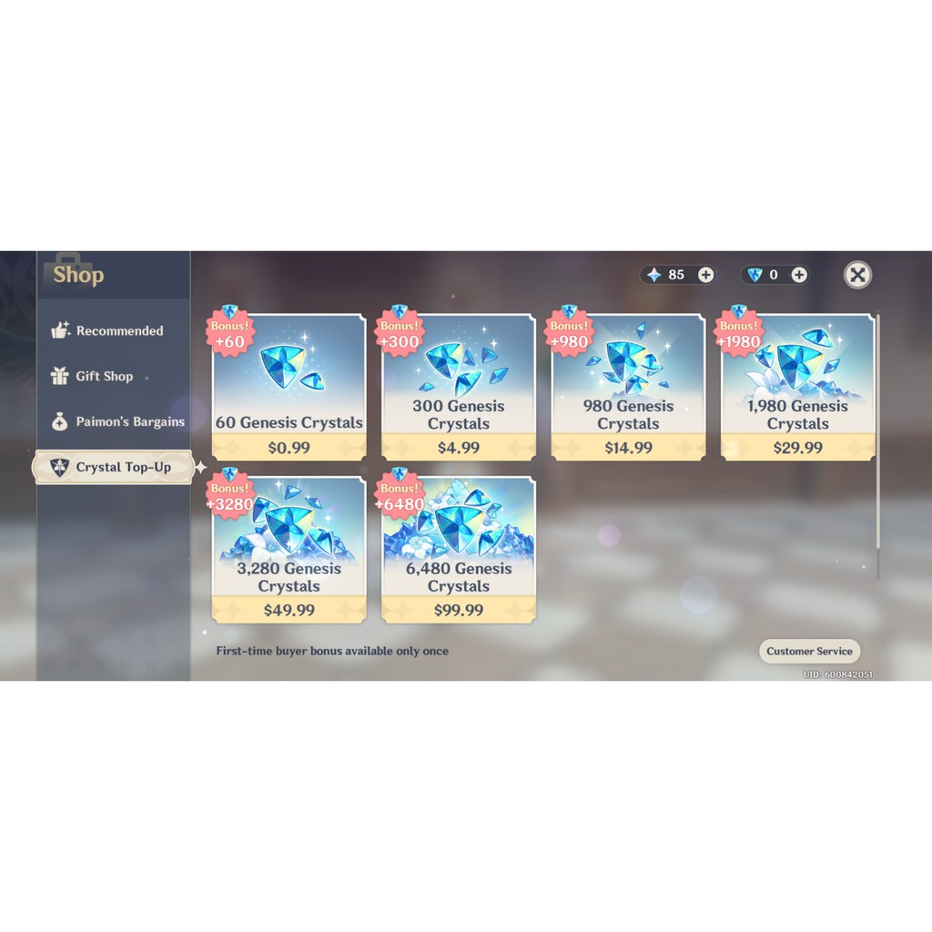 原神国际服创世结晶genshin Lmpact 充值代充氪金储值 Shopee Malaysia